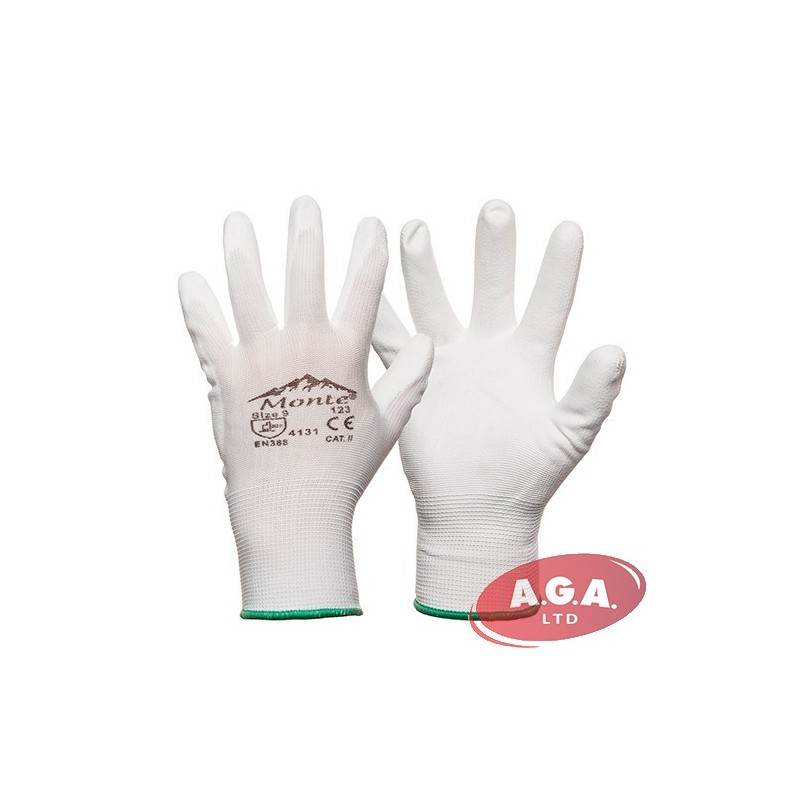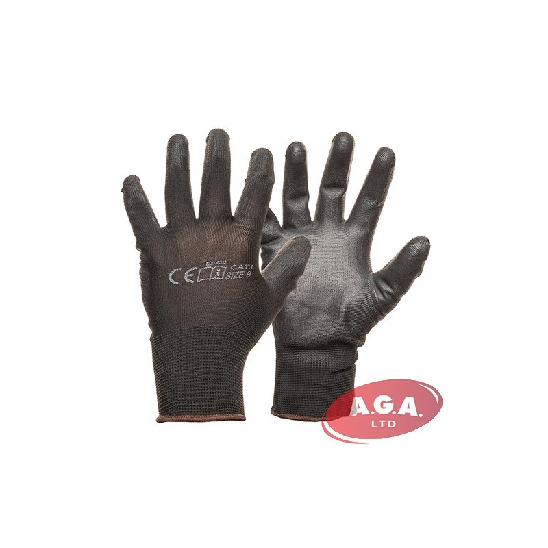 Poliestera trikotāzas cimdi ar PU pārklājumu.