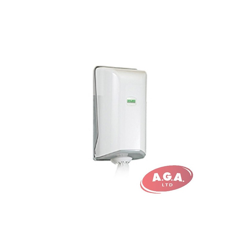 Dispensers, ar padevi no vidus, piemērots papīra dvieļiem ruļļos