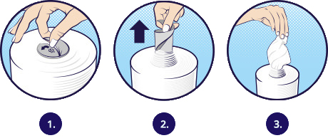 Papīra dvielim iestrādāta perforēta kartona serde, kuru viegli un bez piepūles var izņemt. Atrodiet serdes sākumu un paplēsiet to uz centra pusi, kad serdes materiāls jau sācis plīst - raujiet to uz ārpusi vai grieziet to, vai papīra rulli, pulksteņrādītāja vai pret tā virzienu. Gadījumā ja kartona serdes materiāls plīst pirms esiet izņēmuši to, apgrieziet rulli otrādi un atkārtojiet serdes izņemšanu.