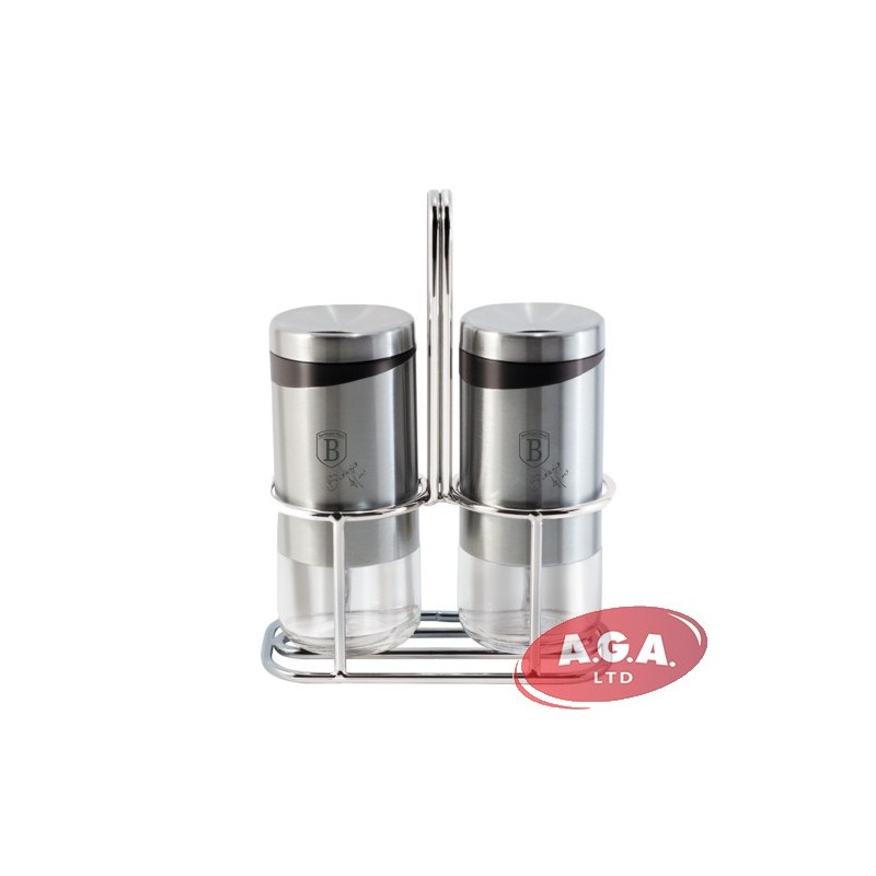 Garšvielu trauku komplekts no augstas kvalitātes nerūšējoša tērauda ar stikla pamatni