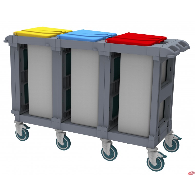 Atkritumu savākšanas ratiņi ar 3 nodalījumiem